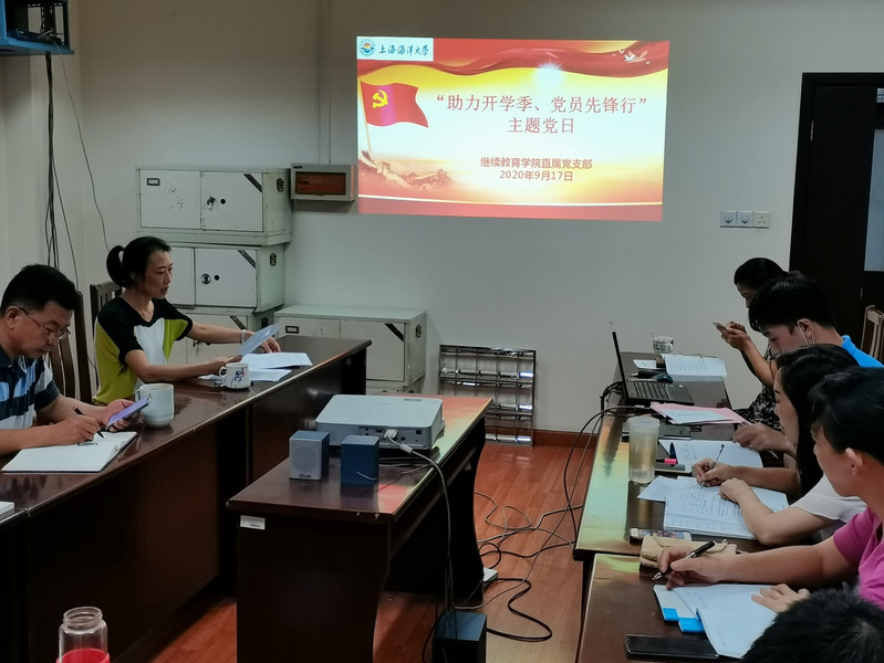 2020年9月17日,yl6809永利直属党支部召开“助力开学季、党员先锋行”主题党日学习活动。首先,直属党支部书记郭亚贞传达学习中国进口博览会组委会会议精神;随后为助力学校疫情常态化防控,确保学校平稳运行和广大师生身体健康,全体党员进行了助力开学季党员先锋行签名承诺;接着围绕“四史”学习,石华中、管勤壮两位老师作了中国共产党党史的学习心得交流,陶小艳、施静叶两位老师作了习近平《治国理政(第三卷)》学习交流;随后陶小艳老师也作《我们众志成城——上海防控新冠肺炎疫情主题展》志愿者主题发言,最后全体党员观看《全国抗击新冠肺炎疫情表彰大会》的视频,并学习习主席在全国抗击新冠肺炎疫情表彰大会的讲话。