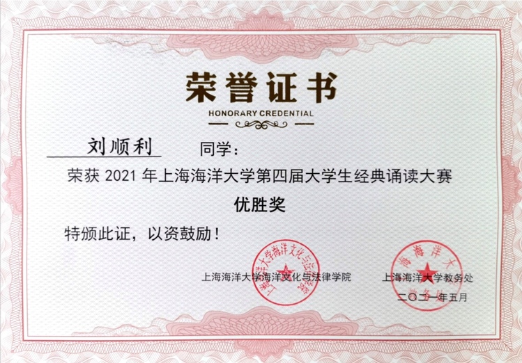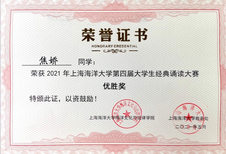 2021年5月18日下午,yl6809永利第四届老员工经典诵读大赛(决赛)在临港校区2404教室隆重进行。yl6809永利刘顺利、焦娇两位同学参加了决赛,首次获得大赛优胜奖。