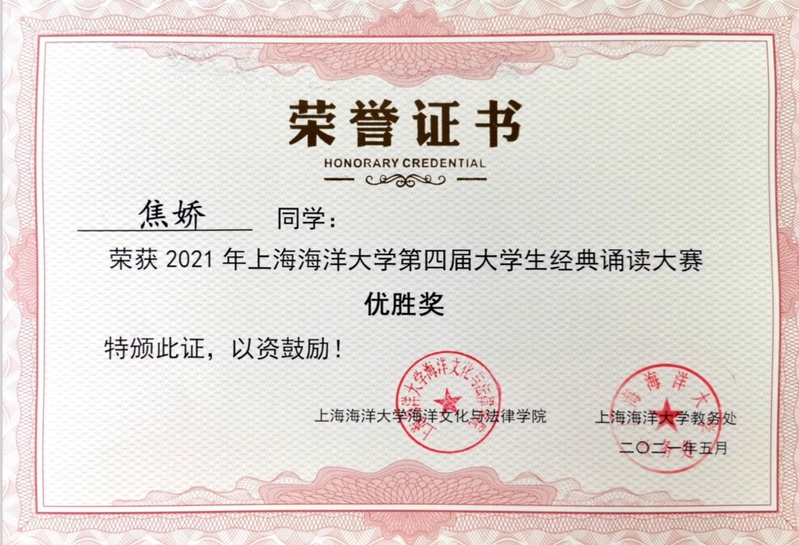 2021年5月18日下午,yl6809永利第四届老员工经典诵读大赛(决赛)在临港校区2404教室隆重进行。yl6809永利刘顺利、焦娇两位同学参加了决赛,首次获得大赛优胜奖。