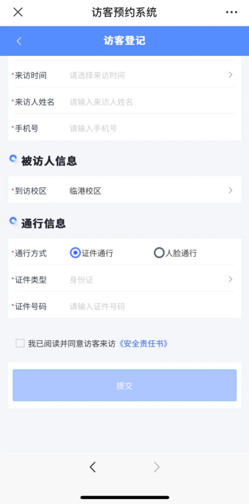 校外来访人员通过预约系统来访申请,具体操作如下: