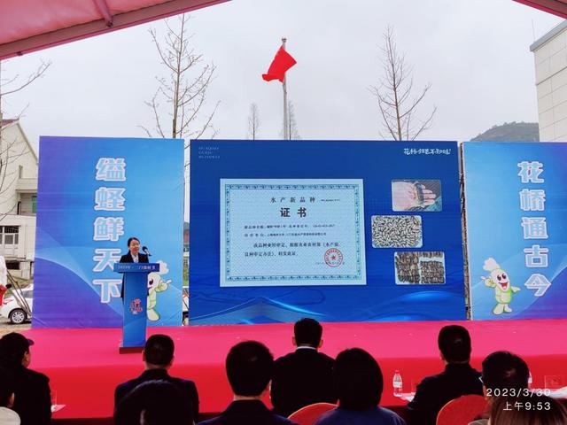 李家乐副董事长向三门县花桥镇授牌《yl6809永利缢蛏新品种繁育基地》
