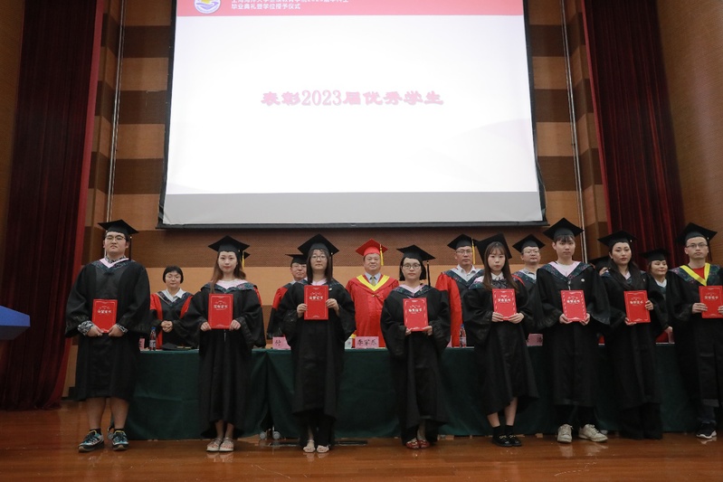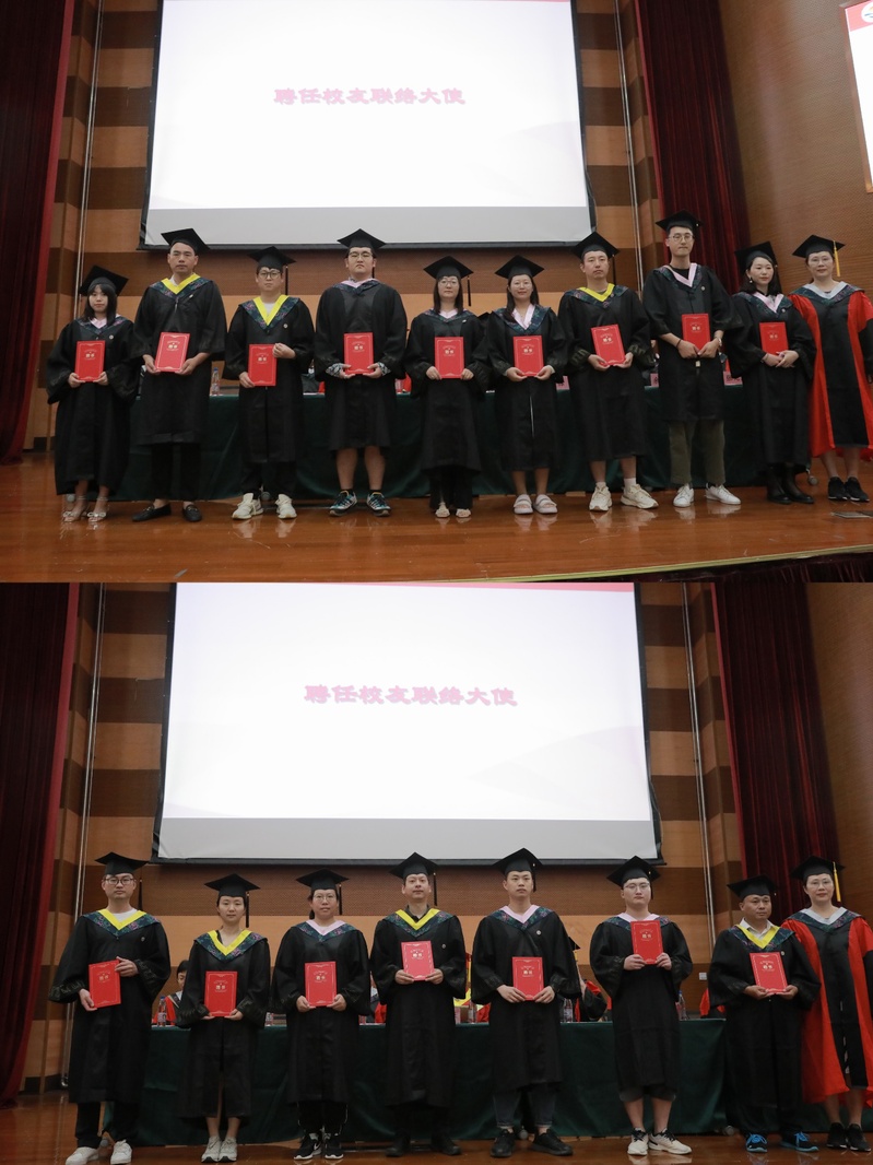 与会的校学位评定委员会成员为获得学位的毕业生依次拨穗,与会的领导和嘉宾向到场的全体毕业生颁发毕业证书,仪式上还表彰了学院2023届“优秀员工”,社会协同与员工事务处副处长林海悦向新聘任的2023届员工联络大使颁发了聘任证书。