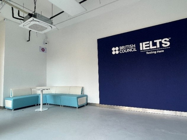 考点位于一楼,入口映入眼帘即为雅思标志性欢迎背景墙,色调清新,令人愉悦。入口右侧为寄存区,寄包柜数量充足,一柜一钥匙,监控全面覆盖,确保个人物品妥善存放。入口左侧为候考区及安检区,放置了沙发及桌子,为大家营造舒适温馨的候考环境。
