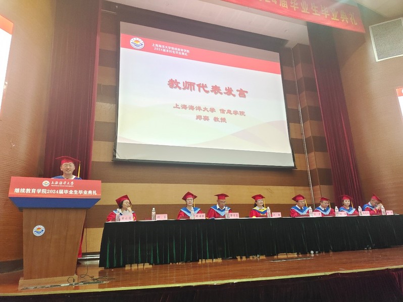 教师代表、信息学院郑奕教授向毕业生圆满完成学业表示热烈祝贺,并勉励毕业生要始终保持好奇心和求知欲,要始终相信自己,相信未来,心中有梦,脚下有路。