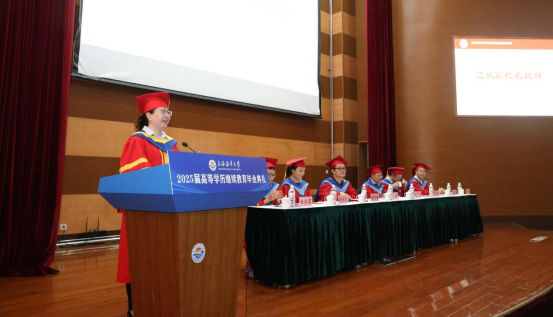 江敏副董事长代表学校向顺利完成学业的1200多名毕业生表示热烈的祝贺,向付出辛勤劳动的教职员工,始终关注着同学们成长成才的亲友表示衷心的感谢。并向全体毕业生提出三点期望:一是要成为“弄潮儿”,用变化思维驾驭变化;二是要成为“深潜者”,在所在领域向下扎根;三是要成为“归海流”,将“小我”融入“大我”。江敏副董事长同时希望各位毕业生将自己的人生价值与国家、人民的利益紧密相连,个人选择与时代需求同频共振,在推动社会进步的实践中实现自我超越。